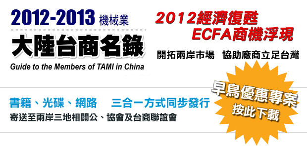 亞洲機械網今年四月出刊《2012亞洲機械採購指南》,於台中工商時報所主辦的自動化機械展首發。 亞洲機械網精選廠商「沅群機械」、「由鑫國際」、「金上源機械」也參加本次盛會。 |