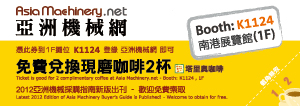 此次展會於23日圓滿落幕,緊接著「2012台北國際數控機械暨製造技術展MT duo」預計於5月3日至6日於台北世貿南港展覽館舉行,「亞洲機械網」將會在K區1123a、1124為參展商與買主服務,亞洲機械網會員憑名片即可免費兌換香醇咖啡喔! |