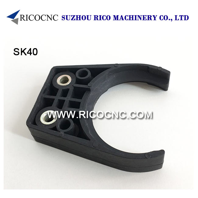 These CNC tool grippers are injection molded from specially formulated high-strength fiber reinforced plastics. It is SK40 tool clip, also compatible with: CAT40, DIN40, HSK63 and ISO40 tool holders.