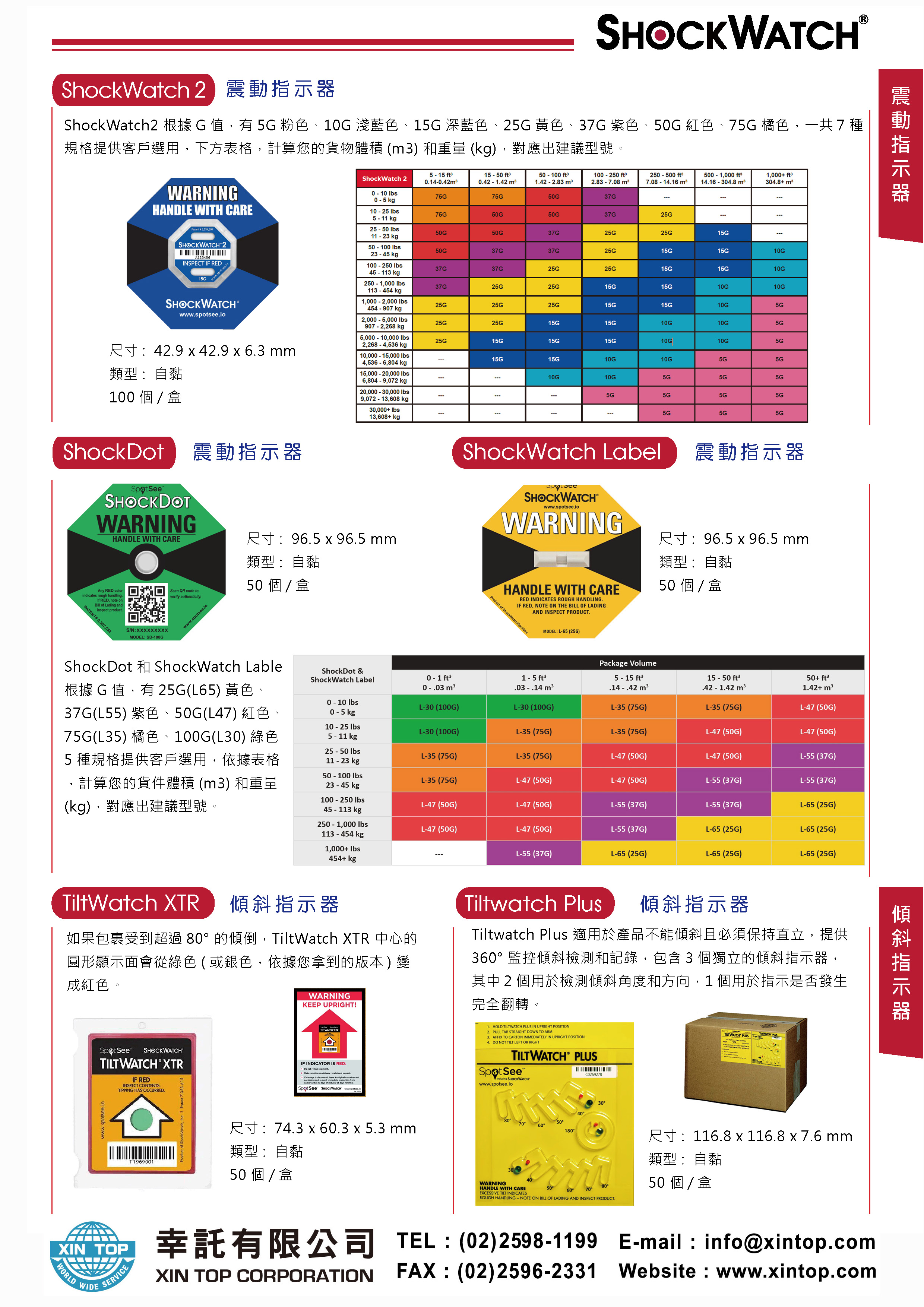 - 2025/11/28ShockWatch 貨物搬運監測用 震動 / 傾斜指示器
