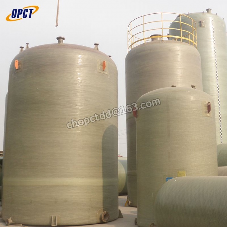 FRP chemical storage tank (also known as FRP chemical storage vessel), is manufactured by filament winding process and designed to store high corrosive chemicals like acids, alkalis, alcohols, mineral oils and esters. It can used at high temperature, under high pressure and performs well in preventing seepage, leakage and overflowing.