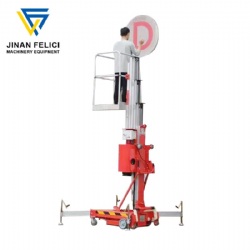 Product features: The single mast aluminum alloy lifting platform is an aluminum alloy light single person series aerial working platform with electro-hydraulic transmission, which is safe and reliable. The maximum working height can reach 14 meters, and the maximum load is 100KG. It uses the internationally used safety plug-in outriggers, which are interlocked with the intelligent electric control, to provide mandatory safety protection for operators. The lift table is small in size, light in weight, flexible and convenient in movement, and can easily pass through the ordinary room and elevator door. The quality and performance exceed JC5099-1998, JG/T5103-1998, CE and other safety standards.
