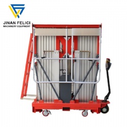Product application: The twin mast aluminum alloy lifting platform has beautiful appearance, small size, light weight, flexible and convenient operation; Up and down two sets of control lifting system, stable lifting, safe and reliable. It is applicable to the repair, maintenance and cleaning of shopping malls, hotels, restaurants, interior decoration, exhibition, space light lines, pipelines, doors and windows, as well as space operations in workshops with narrow areas or spaces. It is an ideal lifting machine and is welcomed by the majority of users.