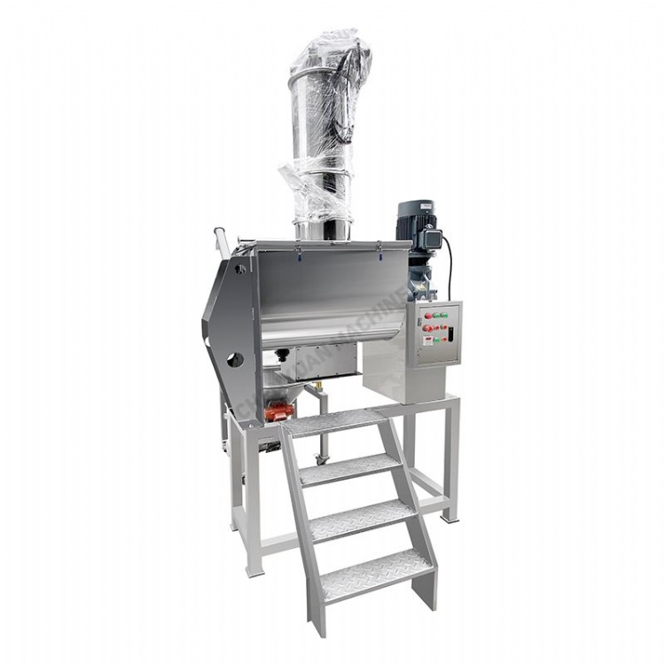 The Horizontal Spiral Ribbon Mixer consists of a U-shaped container, a ribbon agitating blade and a transmission component; the ribbon-shaped blade is generally made into a double or triple layer, and the outer spiral gathers the material from both sides to the center, and the inner spiral the material transportes from the center to the sides to form a convective mixing. The ribbon mixer has good effects on the mixing of viscous or cohesive powders and granules and the mixing of liquid and paste materials in the powder. The cylinder cover can be made into a fully open door to facilitate cleaning and replacement of the equipment or product.