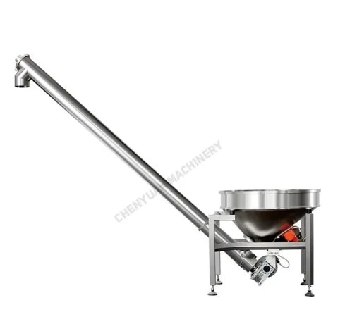 A Spiral Conveyor Feeder (also called a vertical spiral elevator, spiral screw conveyor, or spiral feeder) is designed to move powders, granules, flakes, or pellets vertically from one level to another. It uses a spiral or helical screw housed inside a cylindrical or open trough.